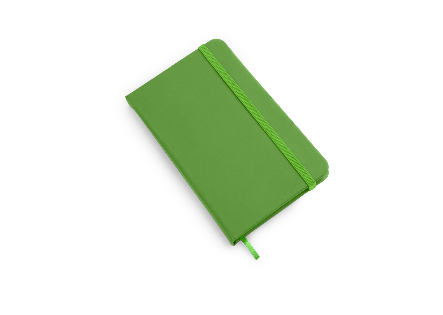 Libreta con cubierta forrada en imitación cuero. Con banda elástica de cierre. Cinta marcadora. 80 hojas blancas. Tamaño aproximado A6. La libreta de color Natural viene con cubierta de cartón reciclado.